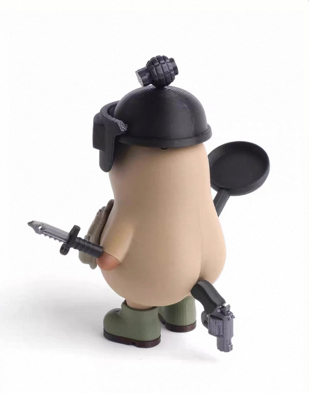 Découvrez cette unique Figurine de Soldat marmotte Tactique - un ajout original et audacieux à toute collection ! Cette figurine neuve, de haute qualité, représente un soldat en forme de pomme de terre équipé d’un arsenal tactique complet : un casque avec grenade, un pistolet, un couteau, une radio et même une poêle à frire pour une touche d’humour. Idéale pour les gamers, les collectionneurs ou toute personne ayant un sens de l’humour, cette pièce méticuleusement conçue se distingue par ses détails et sa solidité.